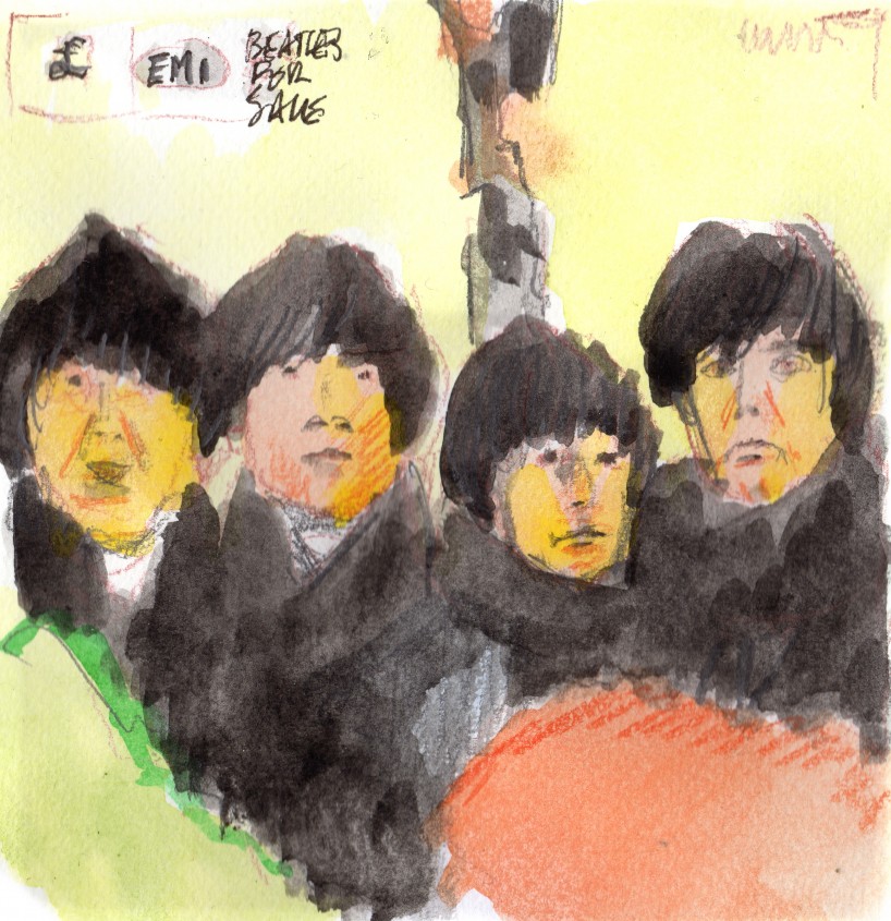 One more watercolor sketch of a Beatles album. Beatles For Sale was their fourth studio album, released in the UK late in 1964.