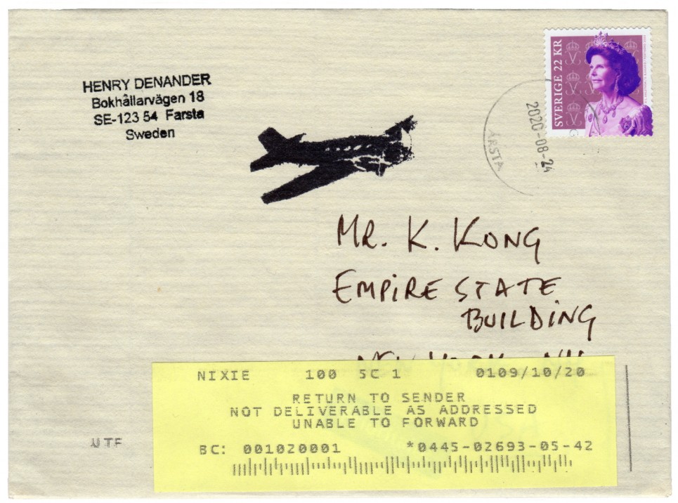 Now I had this returned to me. I think this is a success! Of course I would have loved the old style rubber stamp "Return to Sender" but this is good. King Kong doesn't live there any more!