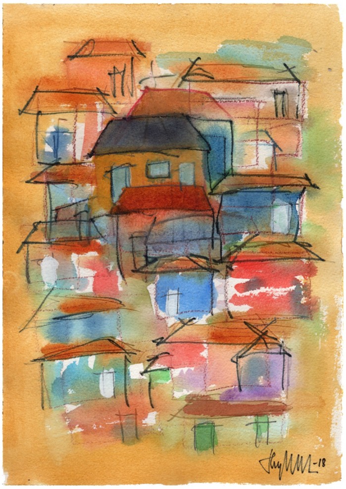 Watercolor, pen and ink on heavy 600g paper. Size 29x38 cm (11.5x15 ")